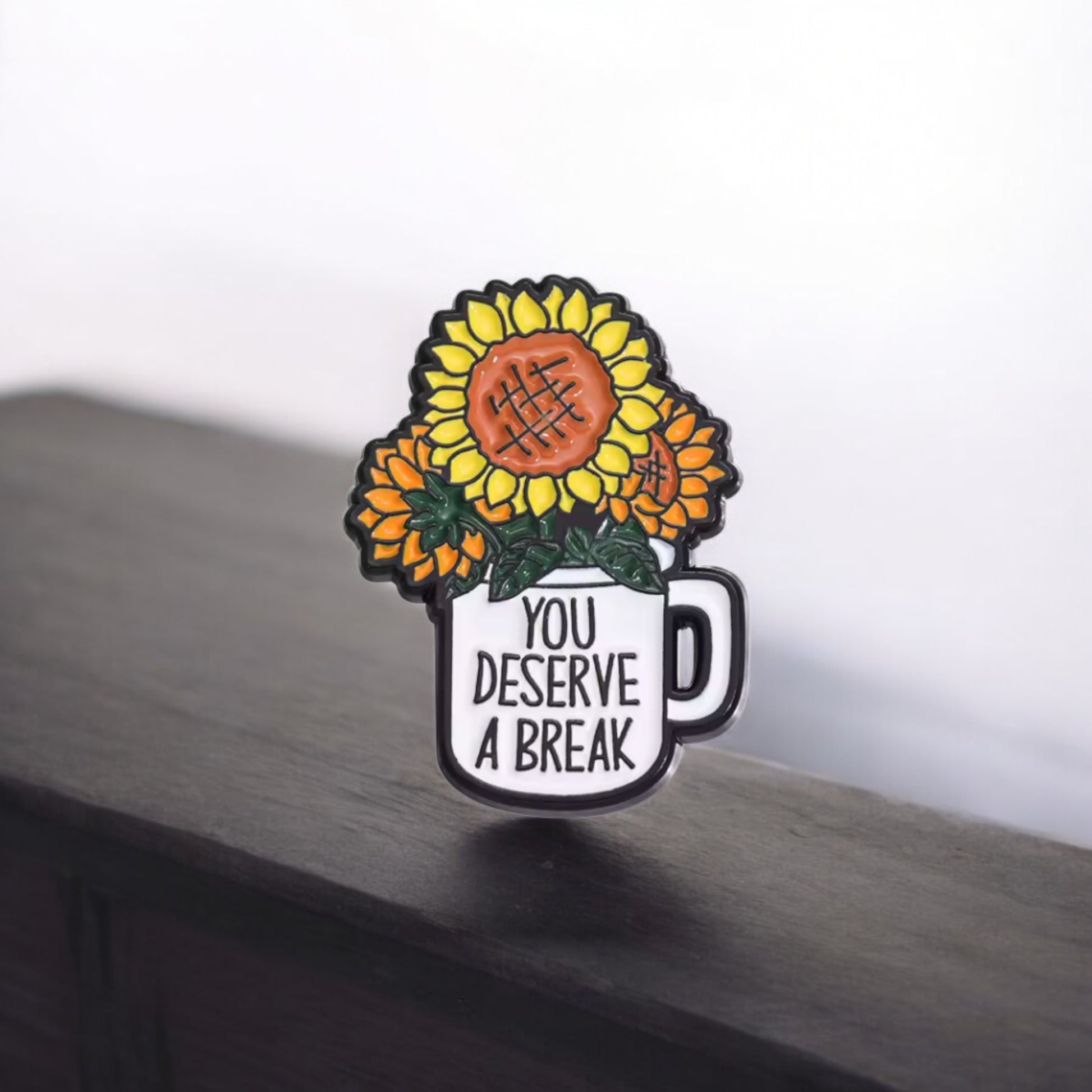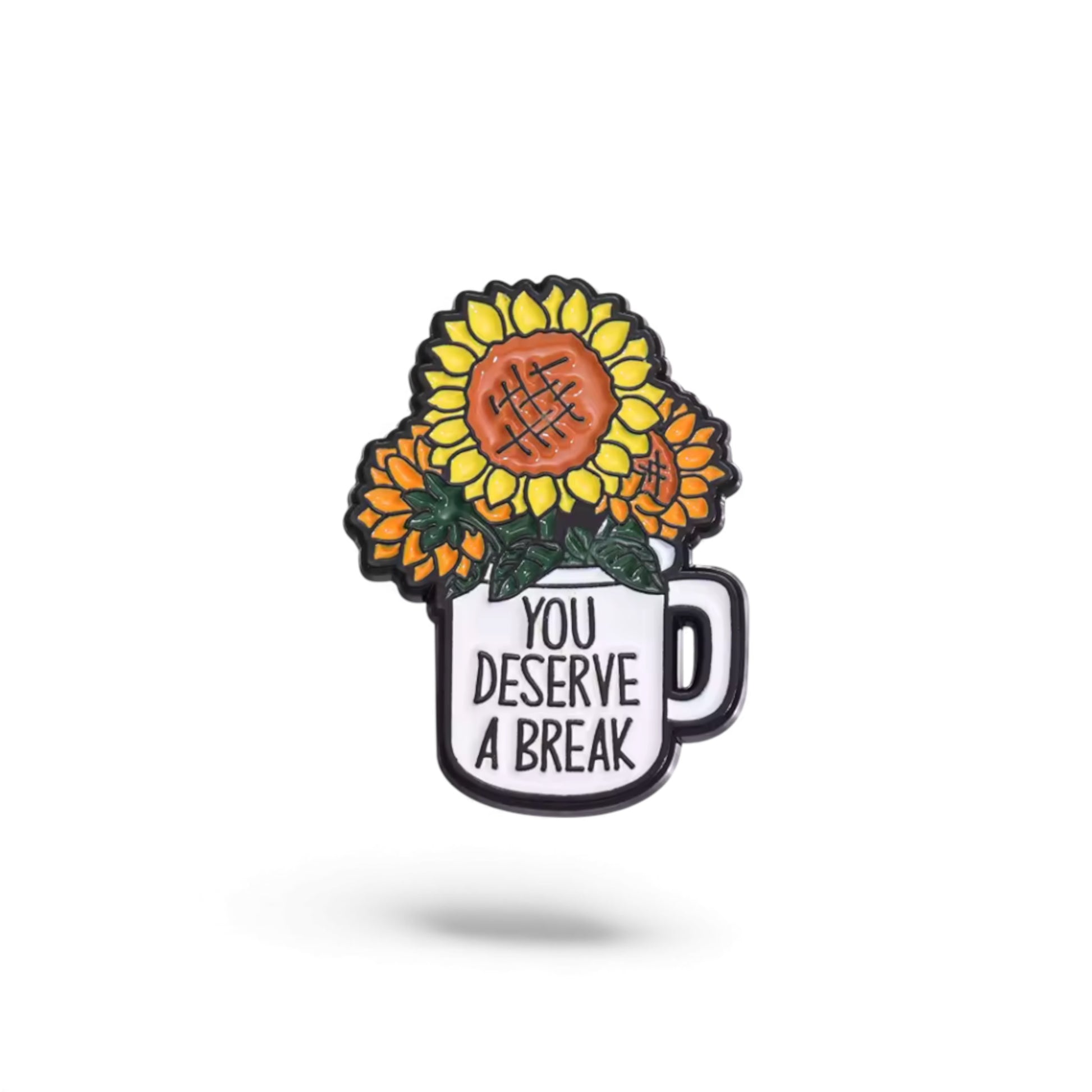 You deserve a break ☕🌻 This adorable enamel pin features a cozy mug overflowing with cheerful sunflowers and a heartfelt reminder that you're worthy of rest. Perfect for pinning on your bag, jacket, or backpack, it's a tiny burst of warmth and encouragement you can carry everywhere. Whether you're treating yourself or gifting someone special, this cute pin spreads love and self-care vibes. A little reminder that taking time for yourself isn't selfish—it's essential. 🫶🏻✨